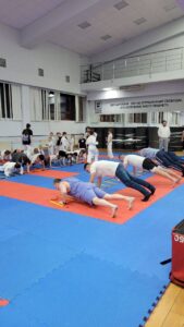В программу вошли не только общефизические упражнения, но и элементы каратэ. Совместные занятия помогли родителям лучше понять, с какими нагрузками ежедневно сталкиваются их юные спортсмены, а детям — почувствовать поддержку самых близких людей.
